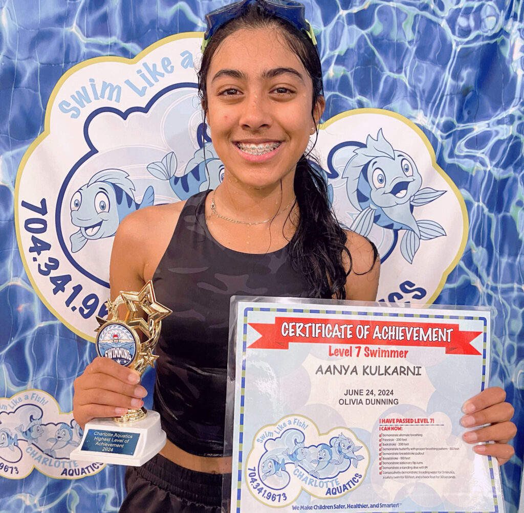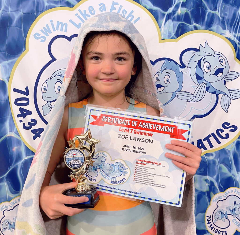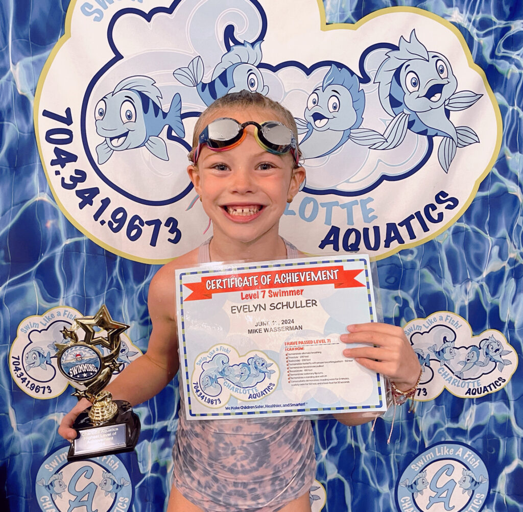 Welcome, Charlotte Aquatics family and proud parents, to a special edition of our swim blog that is sure to make waves of excitement! Today, we are thrilled to shine a spotlight on the rising stars of our aquatic community – the newest level 7 Graduates. Our graduates are ready to share their tales – inspiring narratives that showcase the transformation that happens when passion meets persistence in the shimmering embrace of the water.