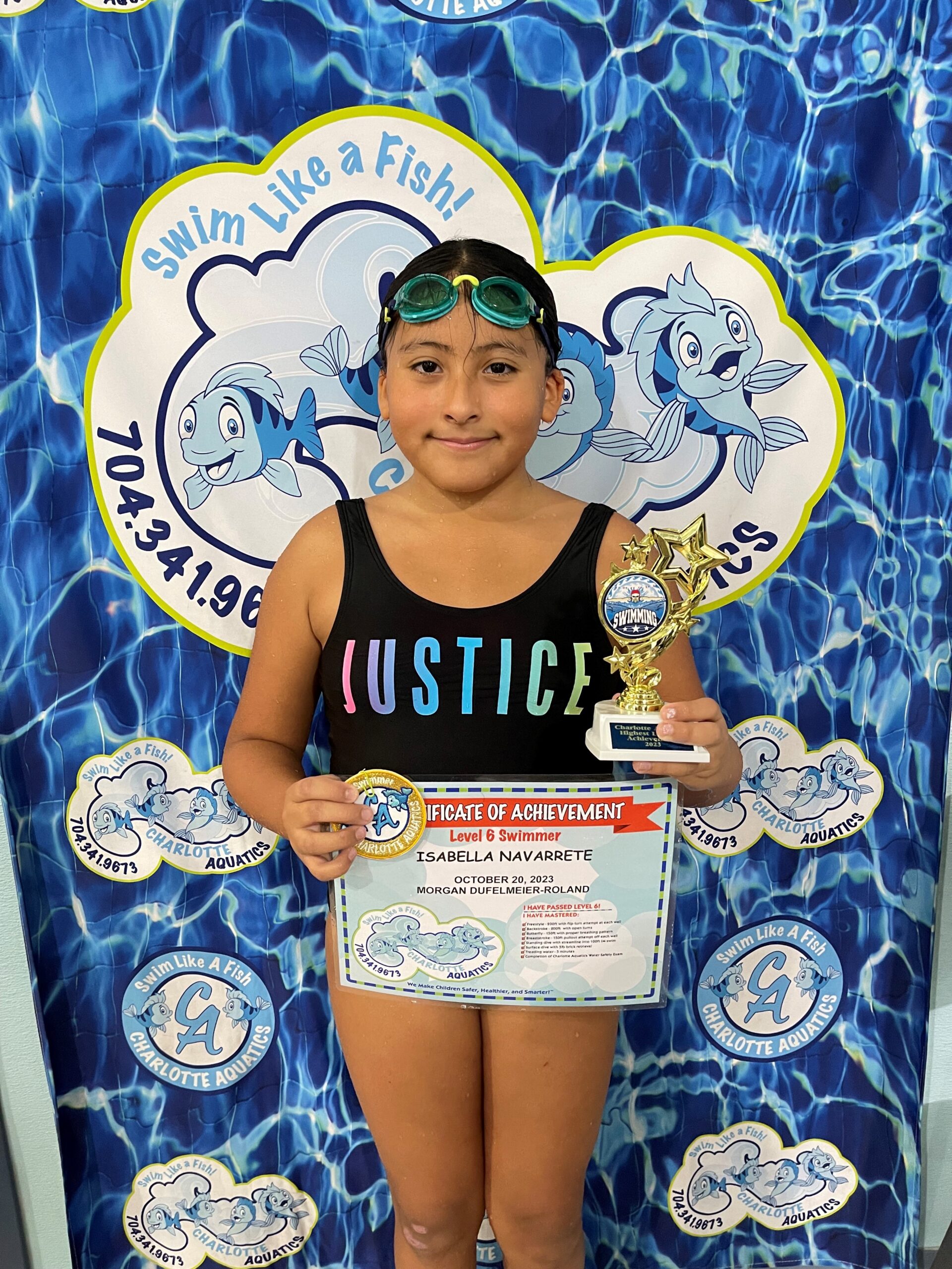 Isabella is a very bright and sweet 4th grader. She loves the water and has always felt safe and secure swimming because of the training and support she has received at Charlotte aquatics. We have loved every teacher she has had, not only because they have taught her how to be safe in the water, but because they have also encouraged and pushed her – celebrating her victories along the way. I believe that thanks to Charlotte aquatics she has gained a love and passion for swimming. Thank you all for everything you have done and we will forever be grateful. It has been an amazing 3 years! Love Mom, Dad and Bryan.