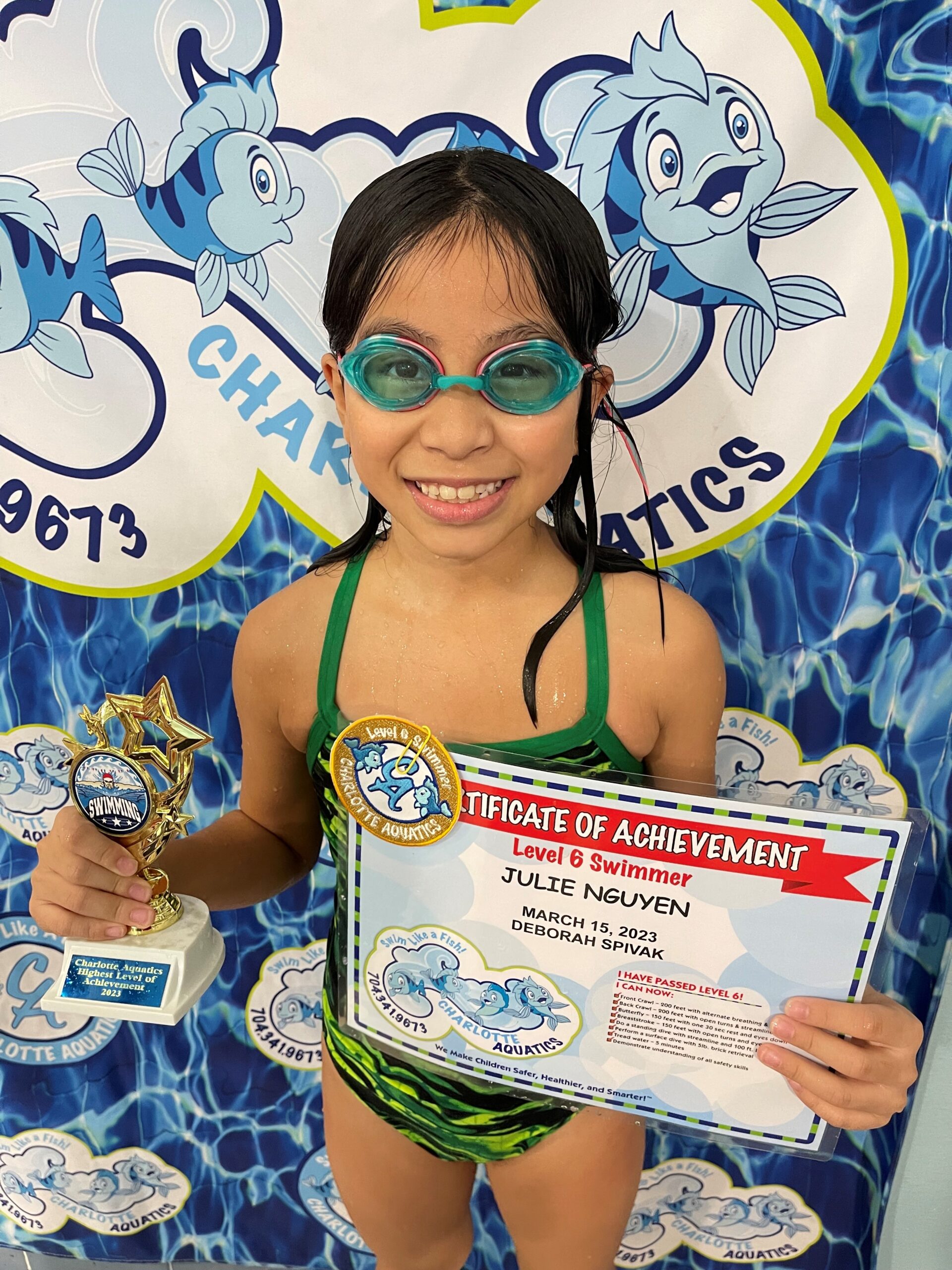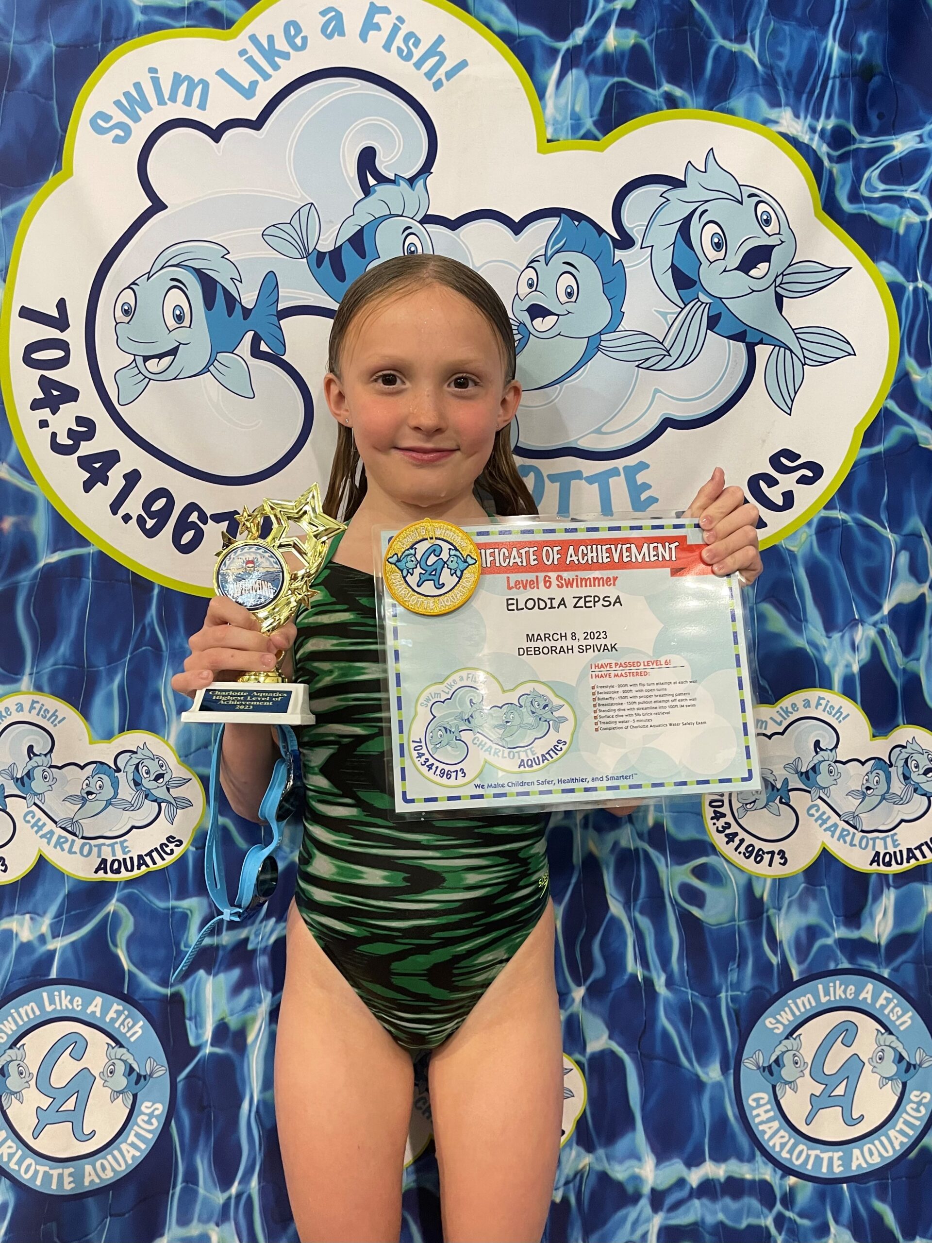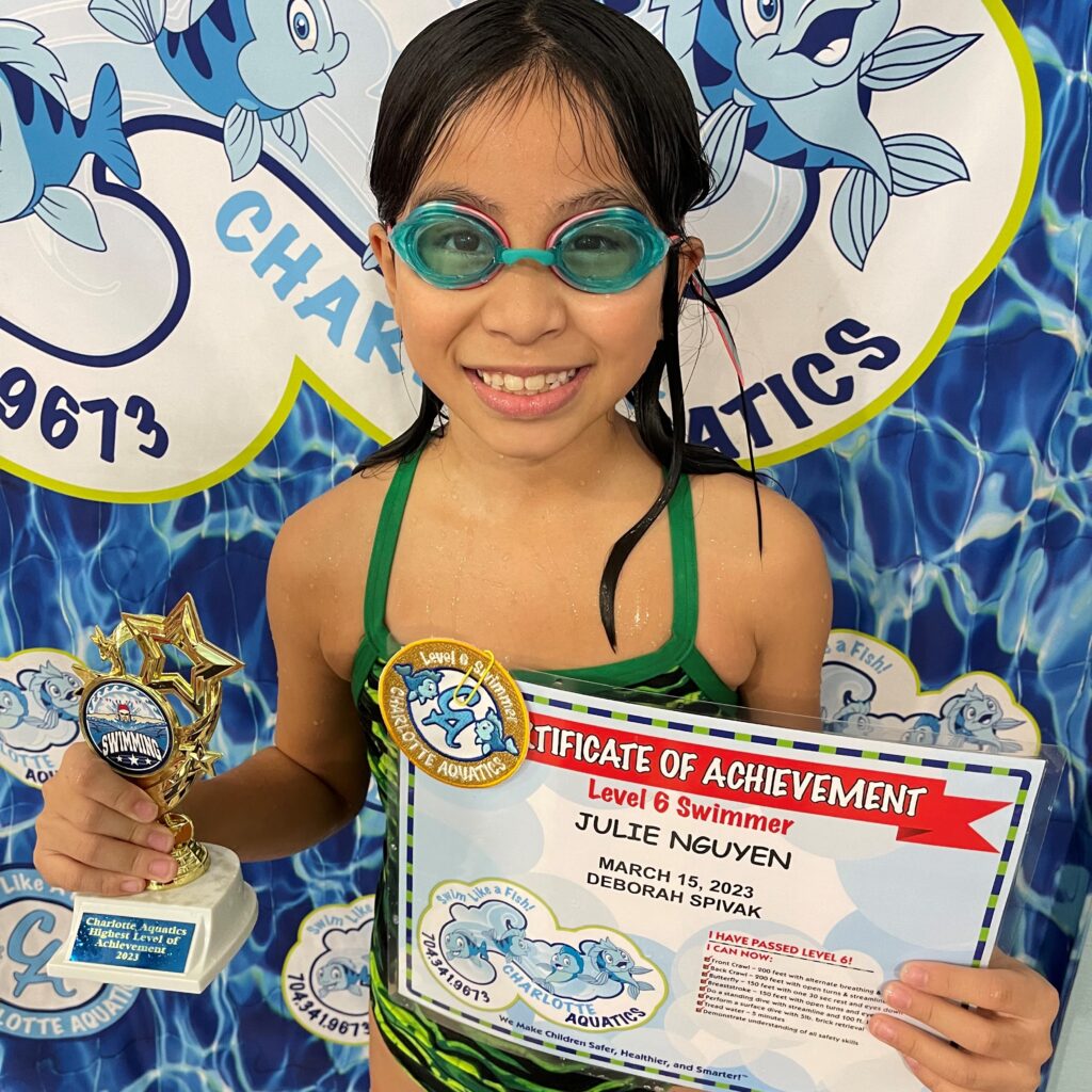 Elodia is 8 years old. She loves swimming, and when she isn’t swimming she is either playing softball or creating something! She has wonderful memories of summer swim team, including making new friends and winning her first ribbon! Her favorite memories from Charlotte Aquatics are swimming with Ms. GiGi and graduating with Ms. Deborah.