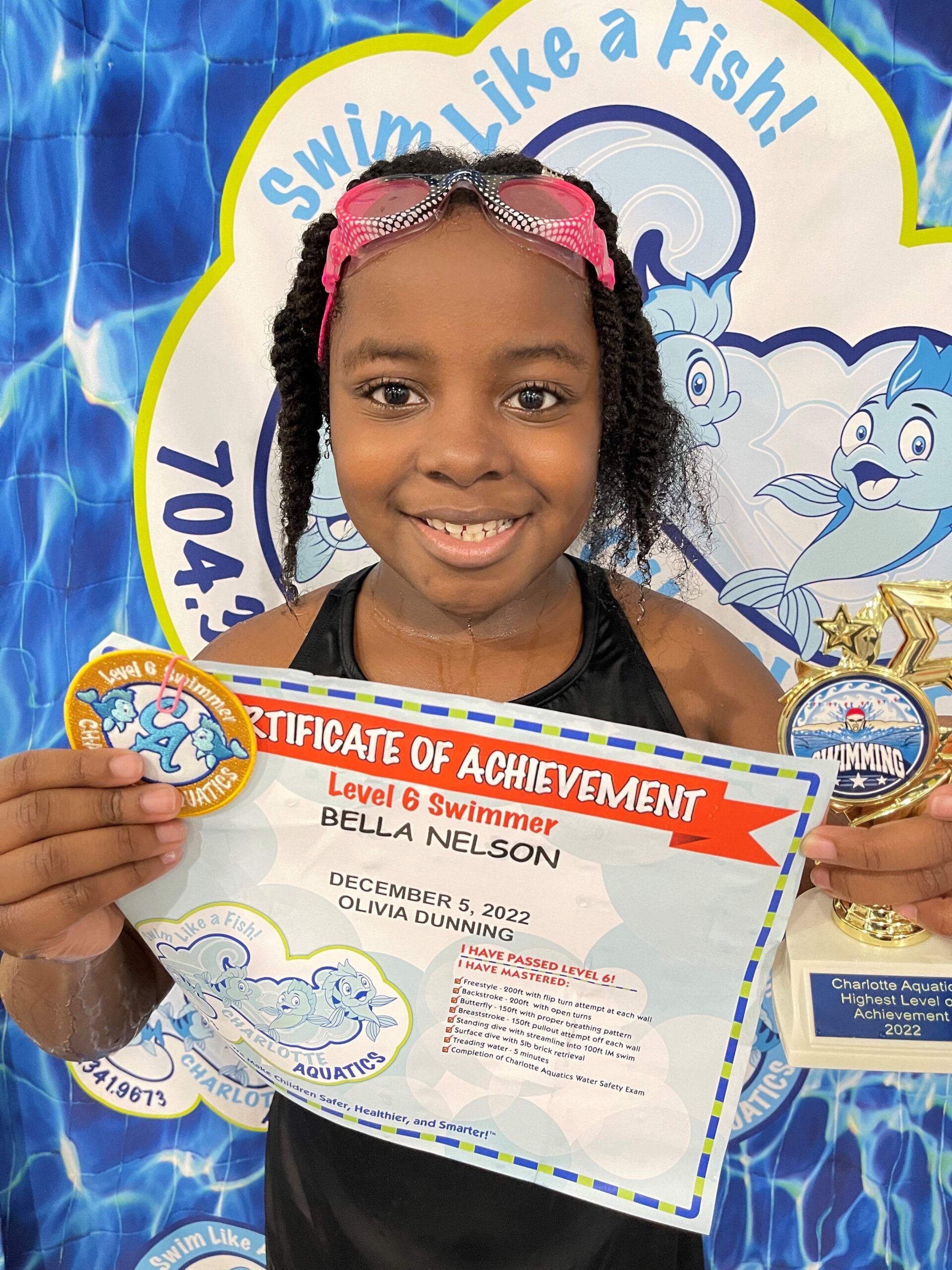 I just wanted to take the time to thank the entire past and present Charlotte Aquatics staff who helped Bella accomplish her goal of passing all 6 swim levels. I was so lucky the day I found this facility back on February 9th, 2016 when Bella was almost 2 years old. She came in not knowing anything about water safety or how to swim and in no time the years flew by and she gained her confidence and mastered her strokes.