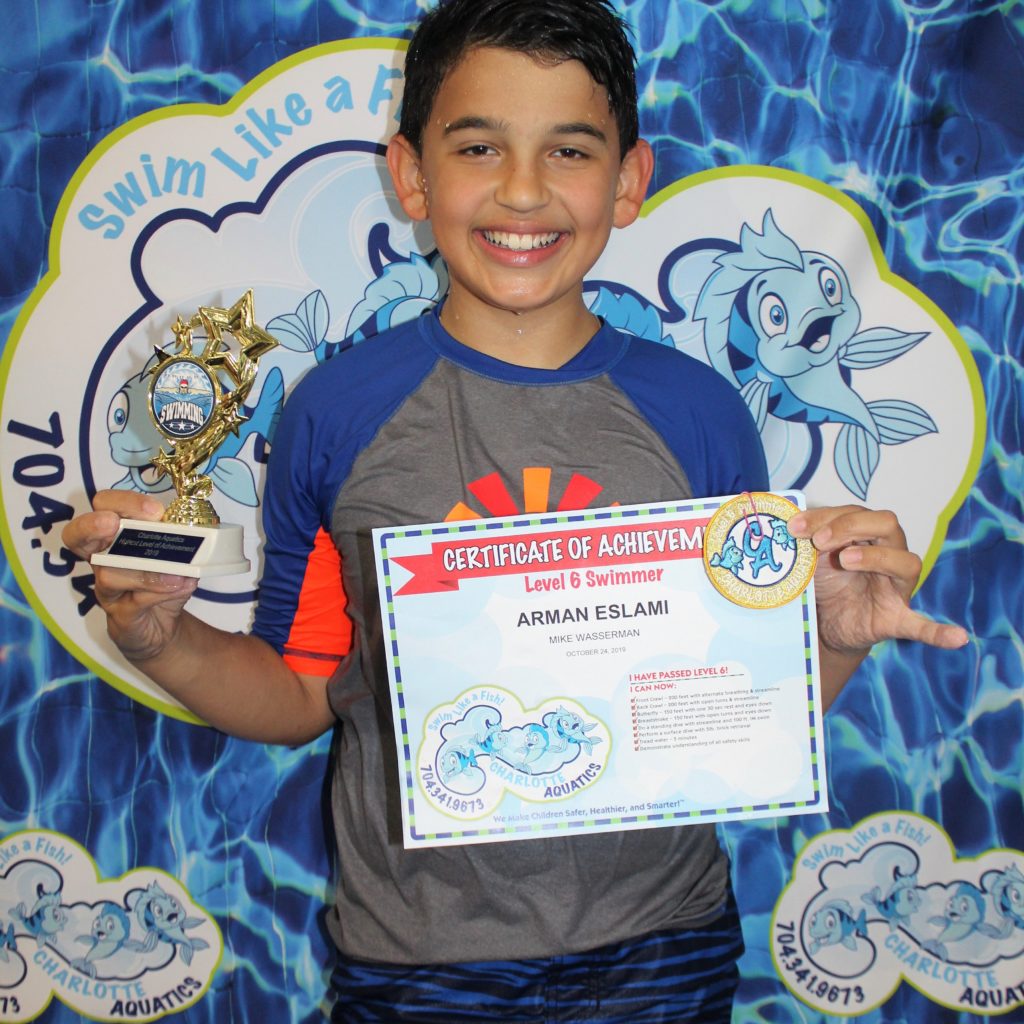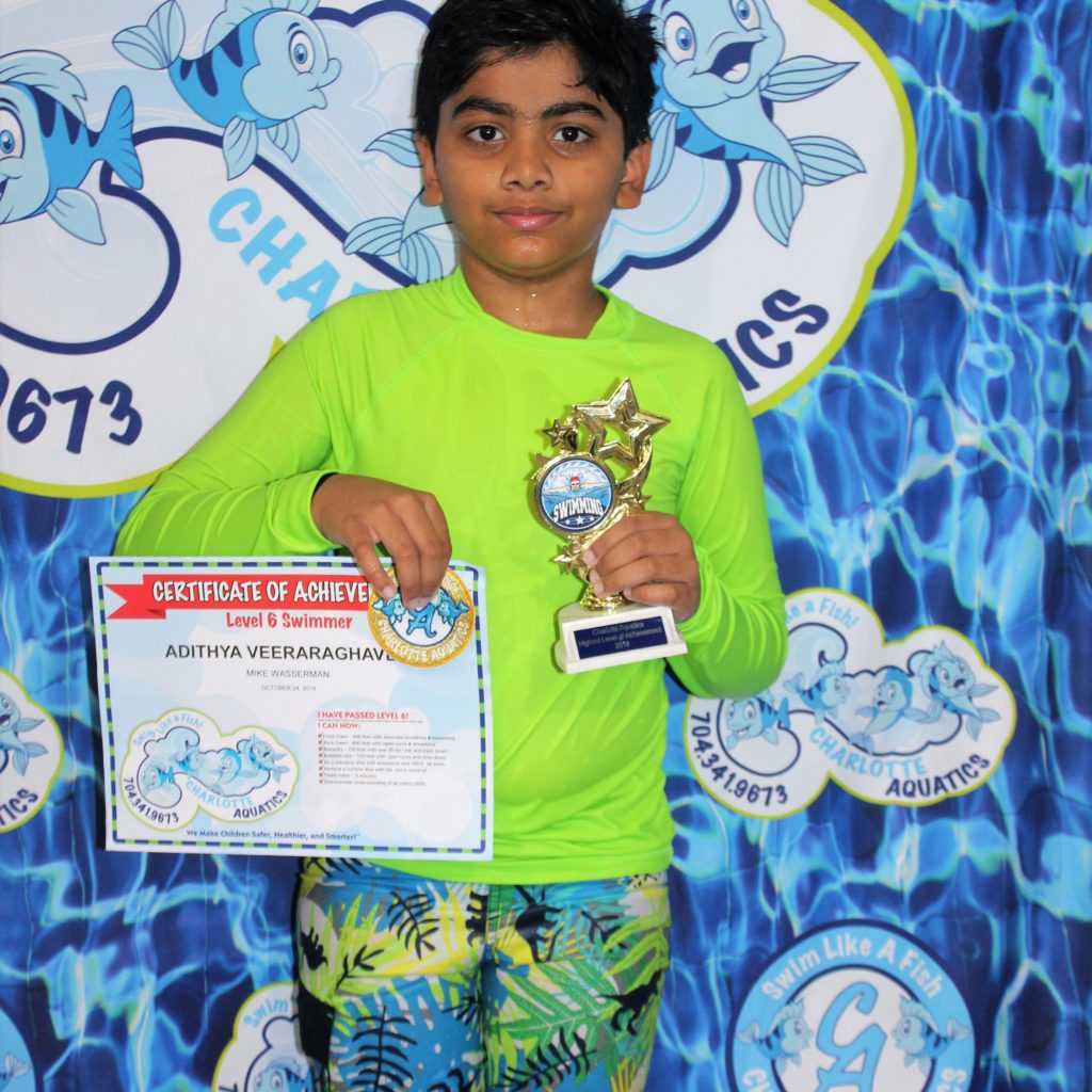 My parents put me in swimming when I was just a few months old because they saw this as a life skill, and I am so happy that I got a chance to improve my natural skill of swimming. I always get to improve my swimming strokes with the help of my favorite instructor, Mr. Mike. My favorite swimming stroke is the butterfly stroke because it uses all parts of my body. Now, because of Charlotte Aquatics, I am a true success in life. Thank You Charlotte Aquatics!