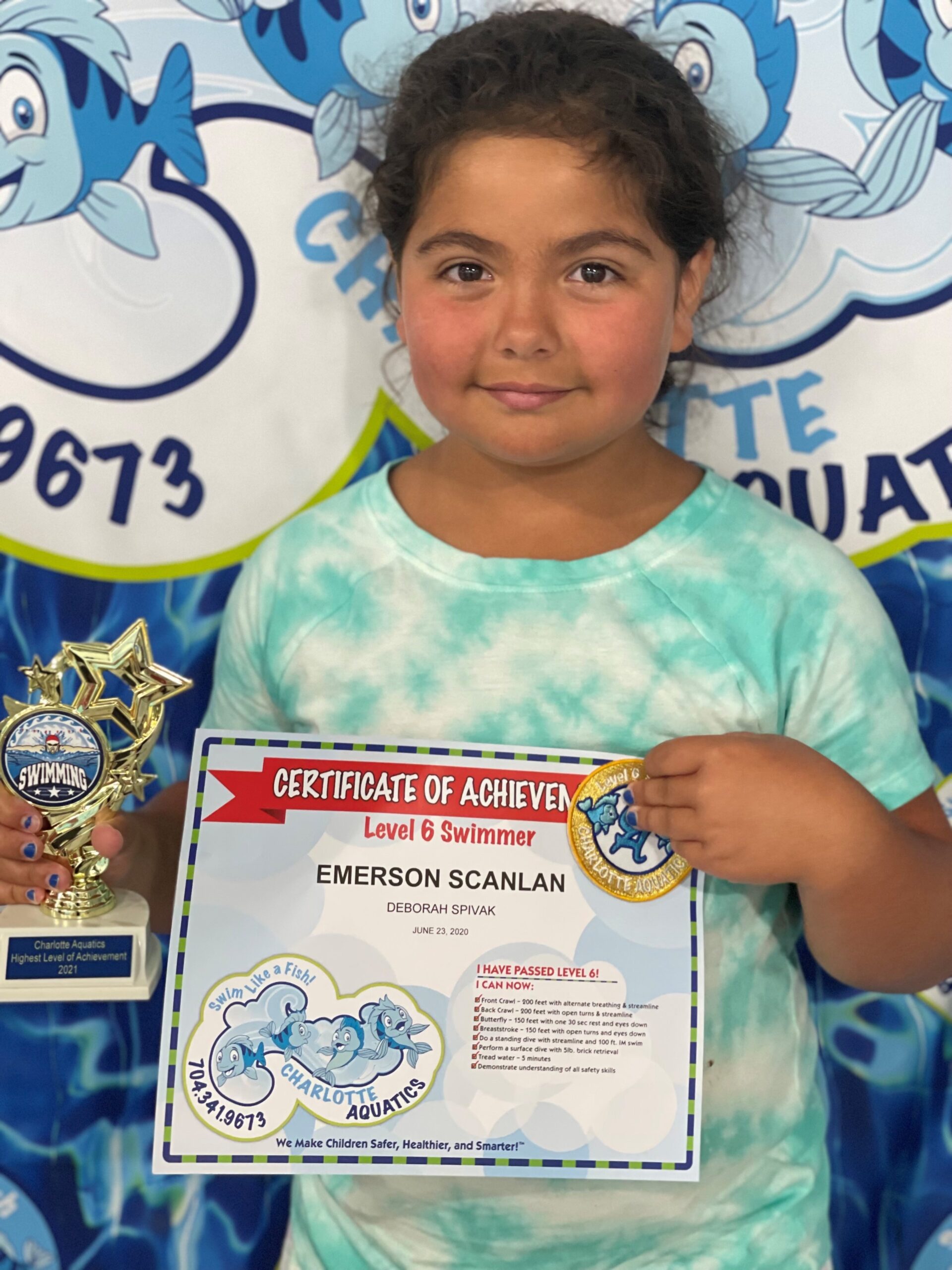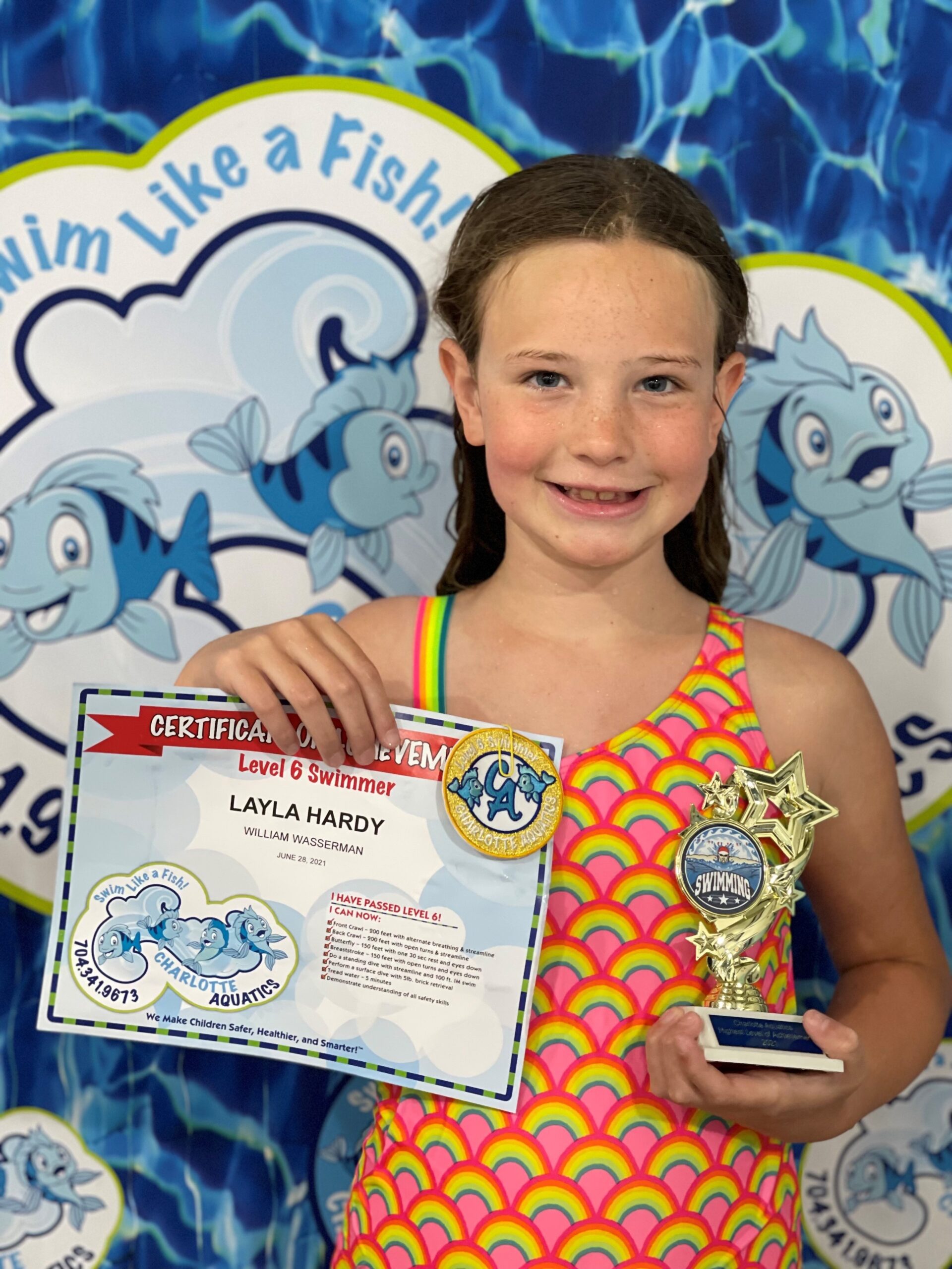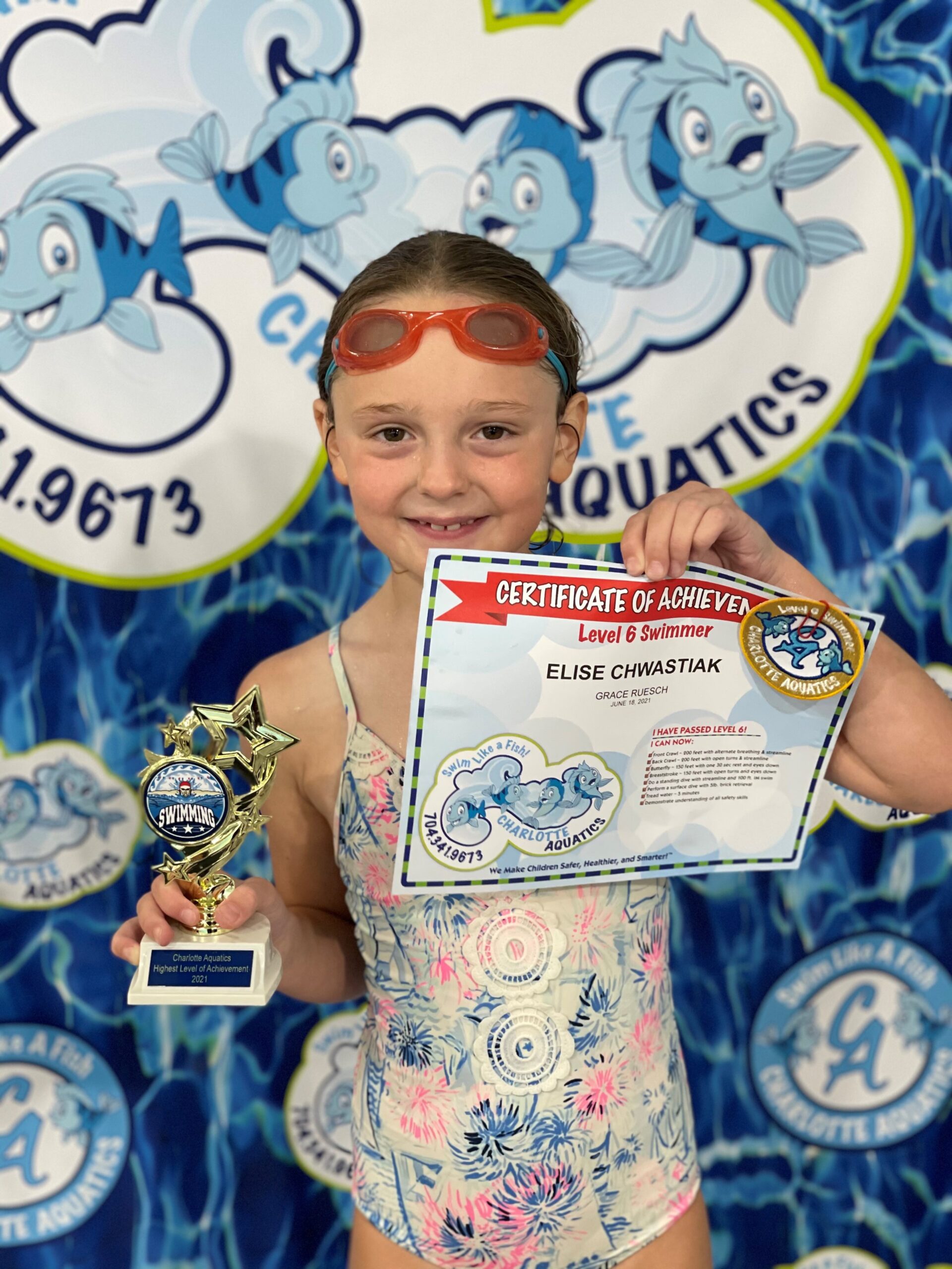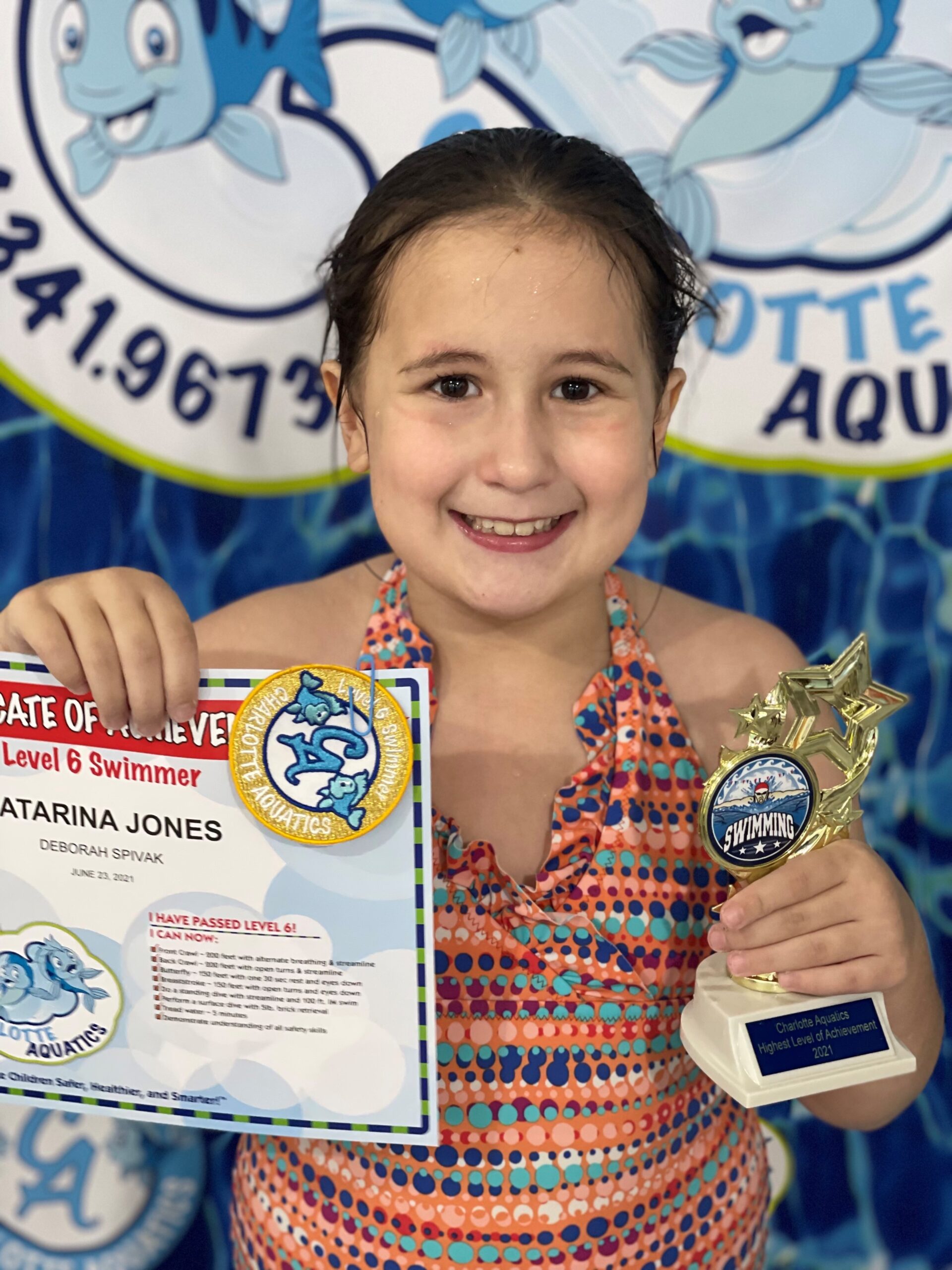 PARENT NOTE: I personally would also like to thank Charlotte Aquatics for providing a fun, learning, and safe environment for my two girls the past 6 years. Everyone is outstanding, from the office staff to the teachers. Both of my girls started swimming classes for the first time with Charlotte Aquatics in 2015. My oldest, graduated in 2018, and now my youngest is graduating. We are so thankful for all the skills they have achieved all through the years. They have become so confident and great swimmers! A big thank you to all the teachers that have taught them through these years, even though some no longer work at Charlotte Aquatics, especially Ms. Deborah, Mr. William, Ms. Gigi, Mr. Mike, and Ms. Kate. We highly recommend your swimming school to anyone!