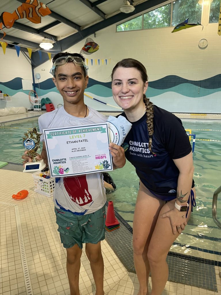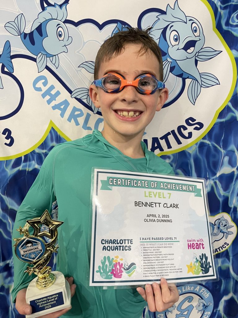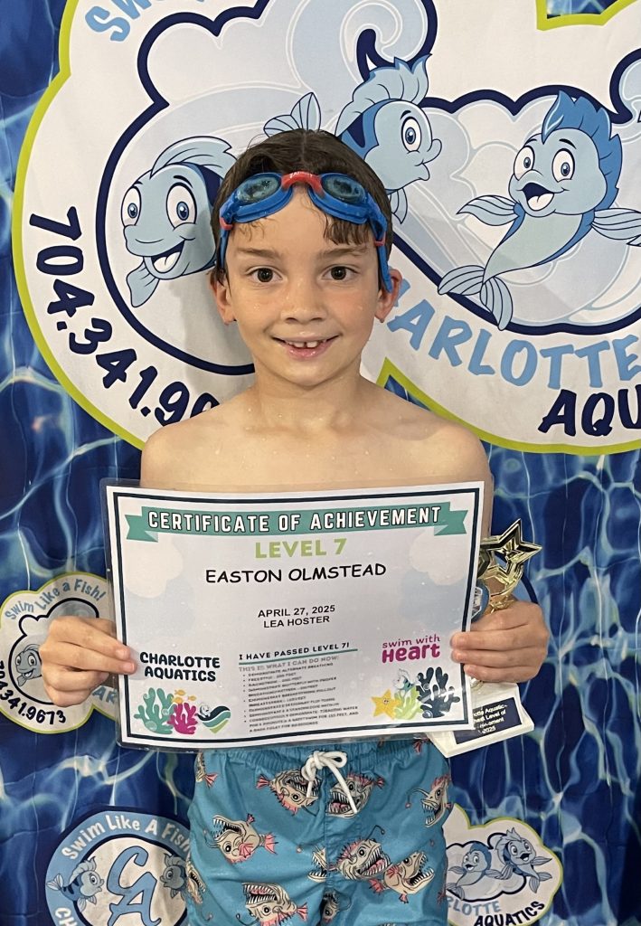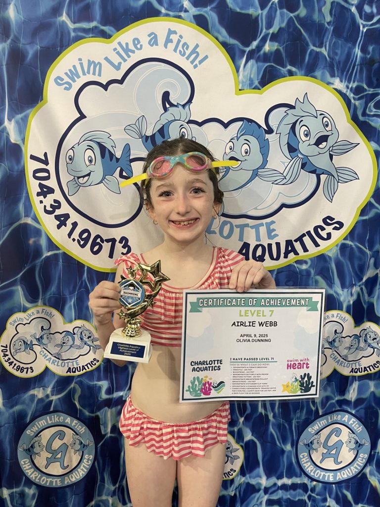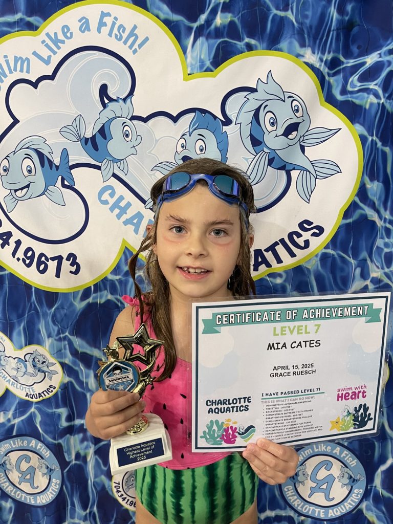 Welcome, Charlotte Aquatics family and proud parents, to a special edition of our swim blog that is sure to make waves of excitement! Today, we are thrilled to shine a spotlight on the rising stars of our aquatic community – the newest Level 7 Graduates! Our graduates are ready to share their tales – inspiring bios that showcase the transformation that happens when passion meets persistence in the shimmering embrace of the water.