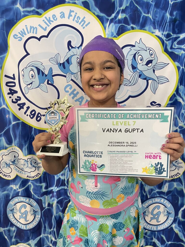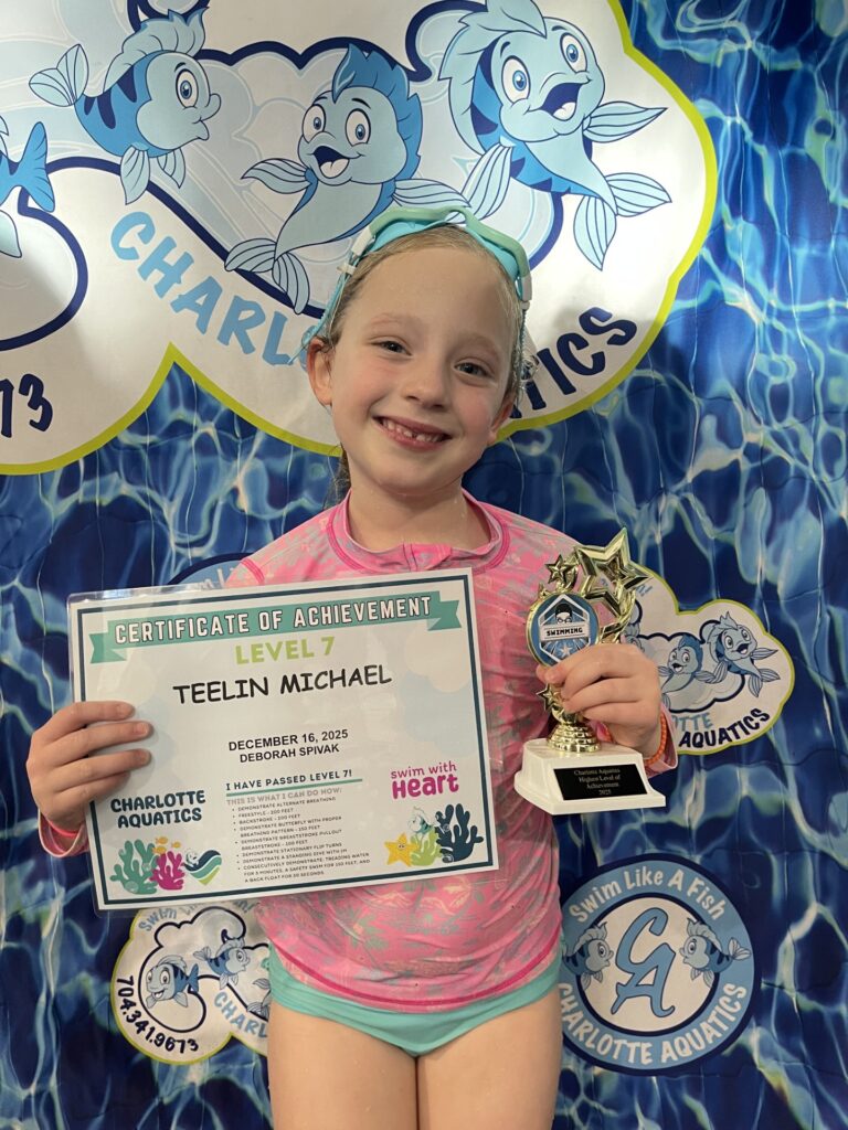 Welcome, Charlotte Aquatics family and proud parents, to a special edition of our swim blog that is sure to make waves of excitement! Today, we are thrilled to shine a spotlight on the rising stars of our aquatic community – the newest Level 7 Graduates! Our graduates are ready to share their tales – inspiring bios that showcase the transformation that happens when passion meets persistence in the shimmering embrace of the water.