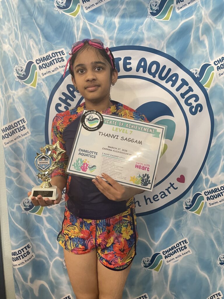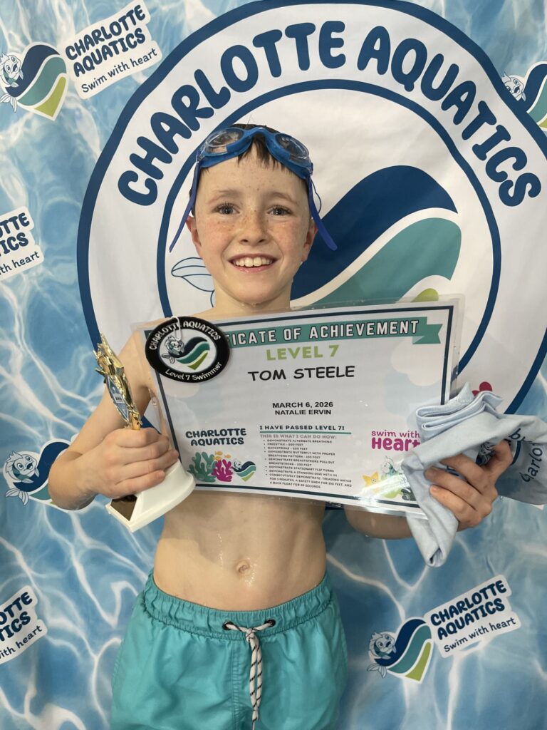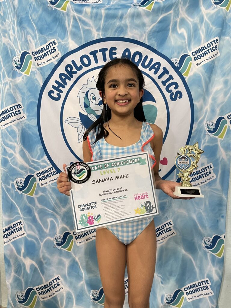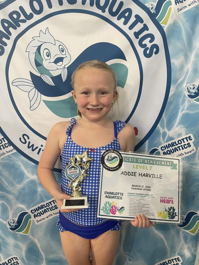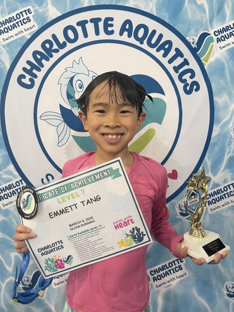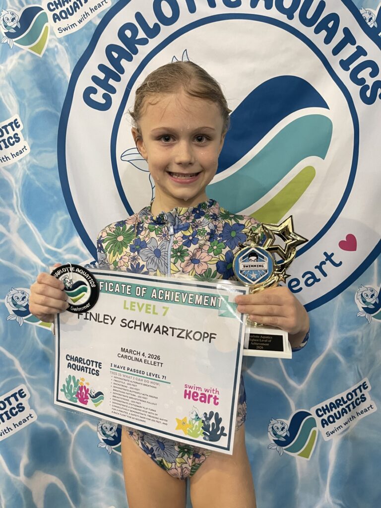 Welcome, Charlotte Aquatics family and proud parents, to a special edition of our swim blog that is sure to make waves of excitement! Today, we are thrilled to shine a spotlight on the rising stars of our aquatic community – the newest Level 7 Graduates! Our graduates are ready to share their tales – inspiring bios that showcase the transformation that happens when passion meets persistence in the shimmering embrace of the water.