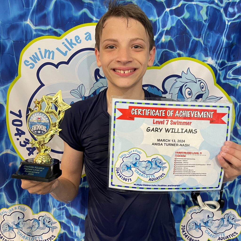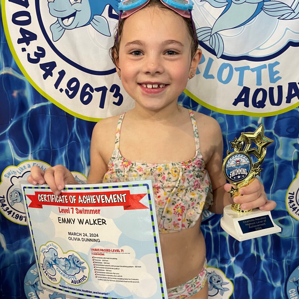 Welcome, Charlotte Aquatics family and proud parents, to a special edition of our swim blog that is sure to make waves of excitement! Today, we are thrilled to shine a spotlight on the rising stars of our aquatic community – the newest level 7 Graduates. Our graduates are ready to share their tales – inspiring narratives that showcase the transformation that happens when passion meets persistence in the shimmering embrace of the water.