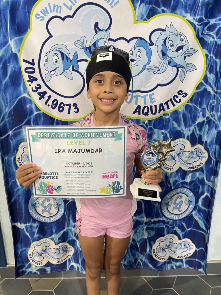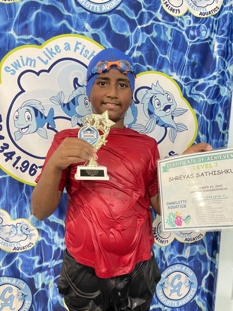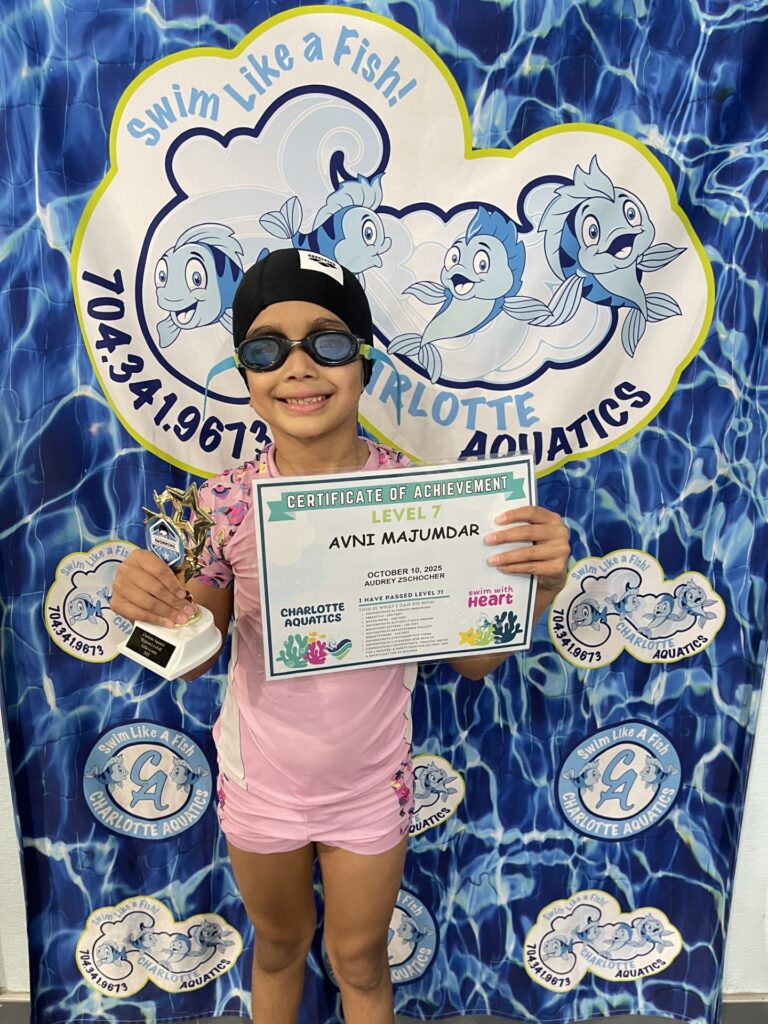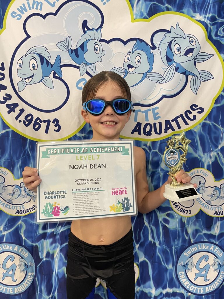 Welcome, Charlotte Aquatics family and proud parents, to a special edition of our swim blog that is sure to make waves of excitement! Today, we are thrilled to shine a spotlight on the rising stars of our aquatic community – the newest Level 7 Graduates! Our graduates are ready to share their tales – inspiring bios that showcase the transformation that happens when passion meets persistence in the shimmering embrace of the water.