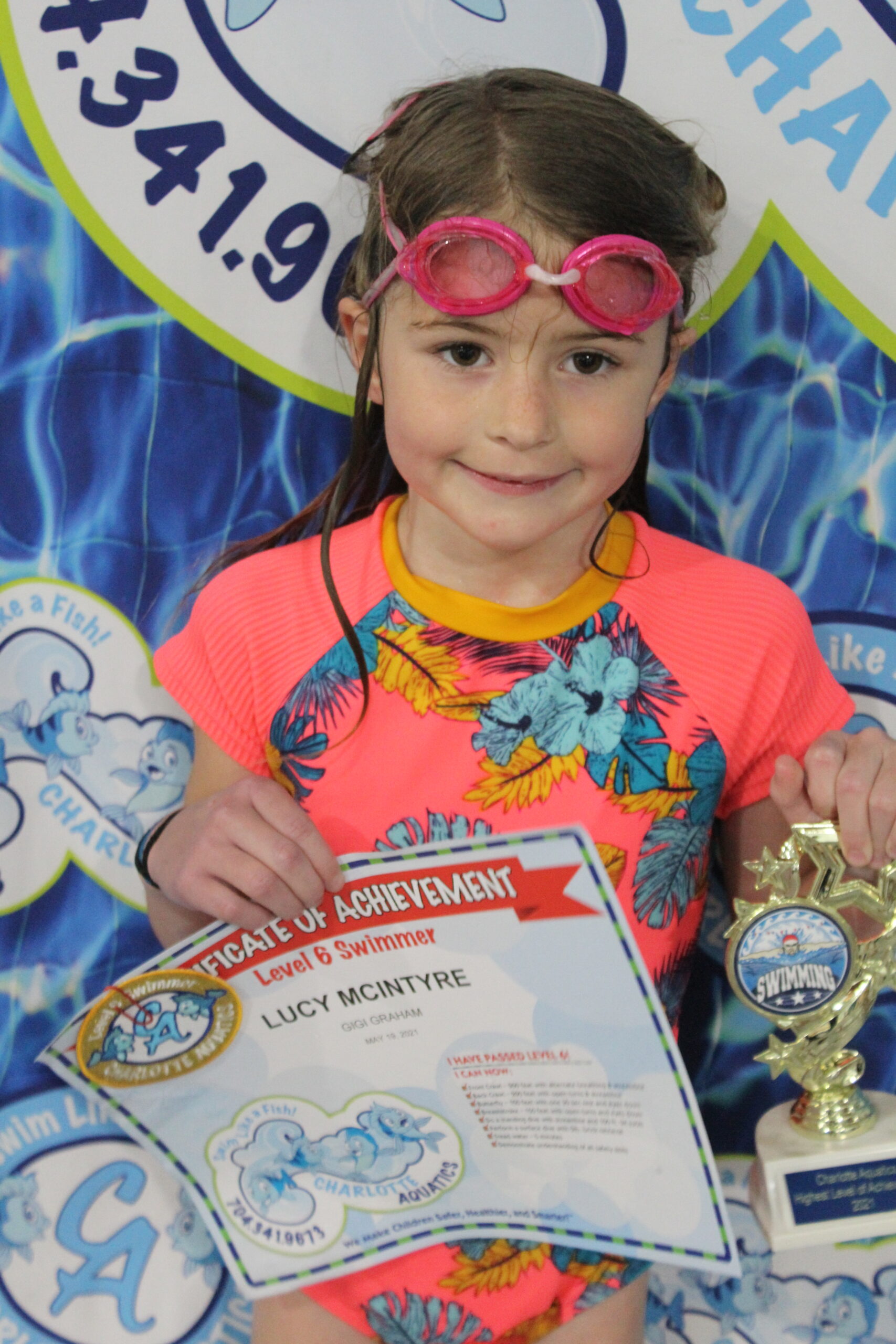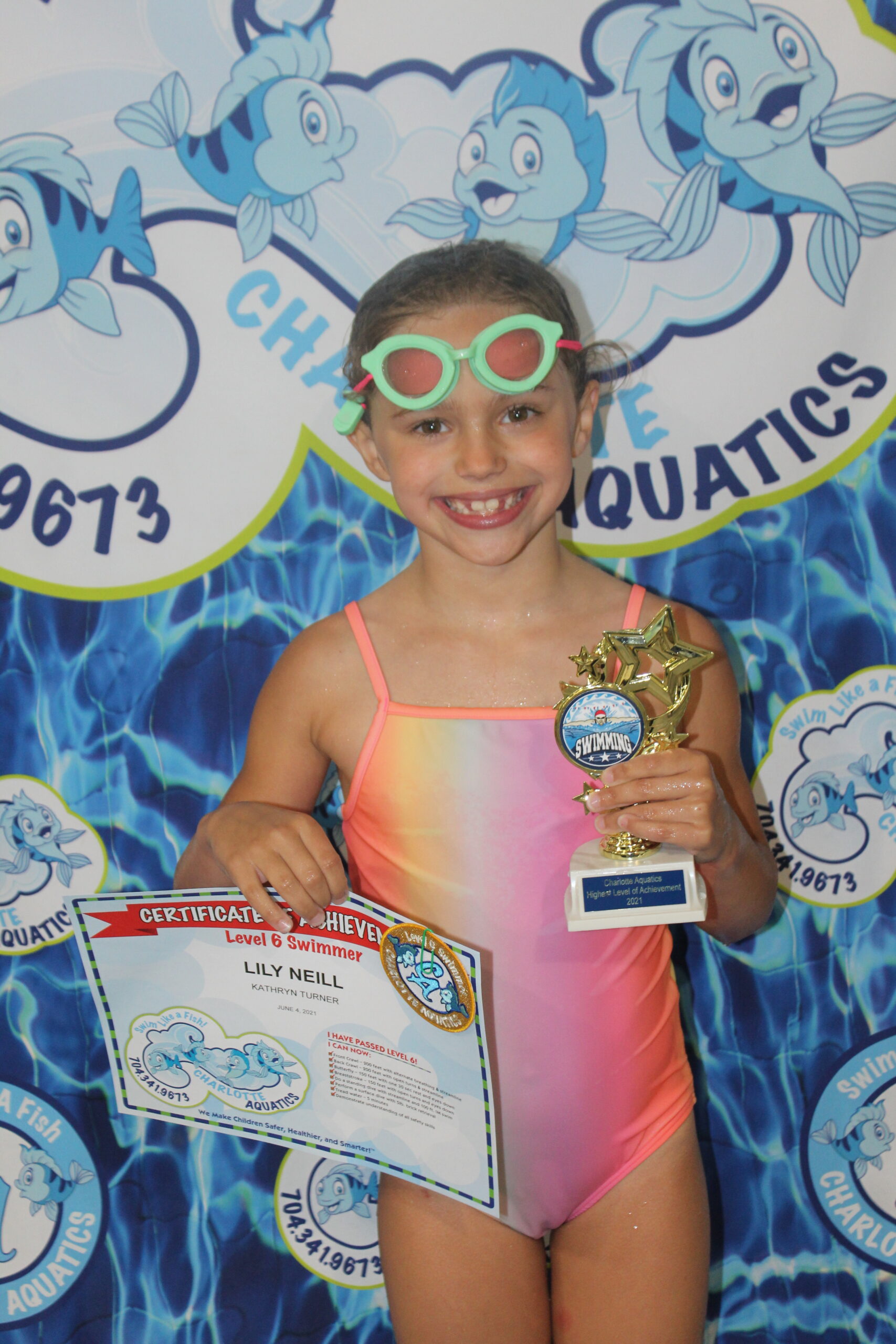 “My name is Lily and I am turning 7 in June. Charlotte Aquatics is the best because they help show me how to do different strokes. It is important to learn to swim so you can be healthy and safe in case you fall in water. I love Coach Kathryn because she is fun and she shows me what to do to learn to swim. My favorite stroke is backstroke, and I am glad that I am learning butterfly because I didn’t know how to do that before. One of my favorite things about Charlotte Aquatics is how you get to go through different levels and know a lot of the coaches.