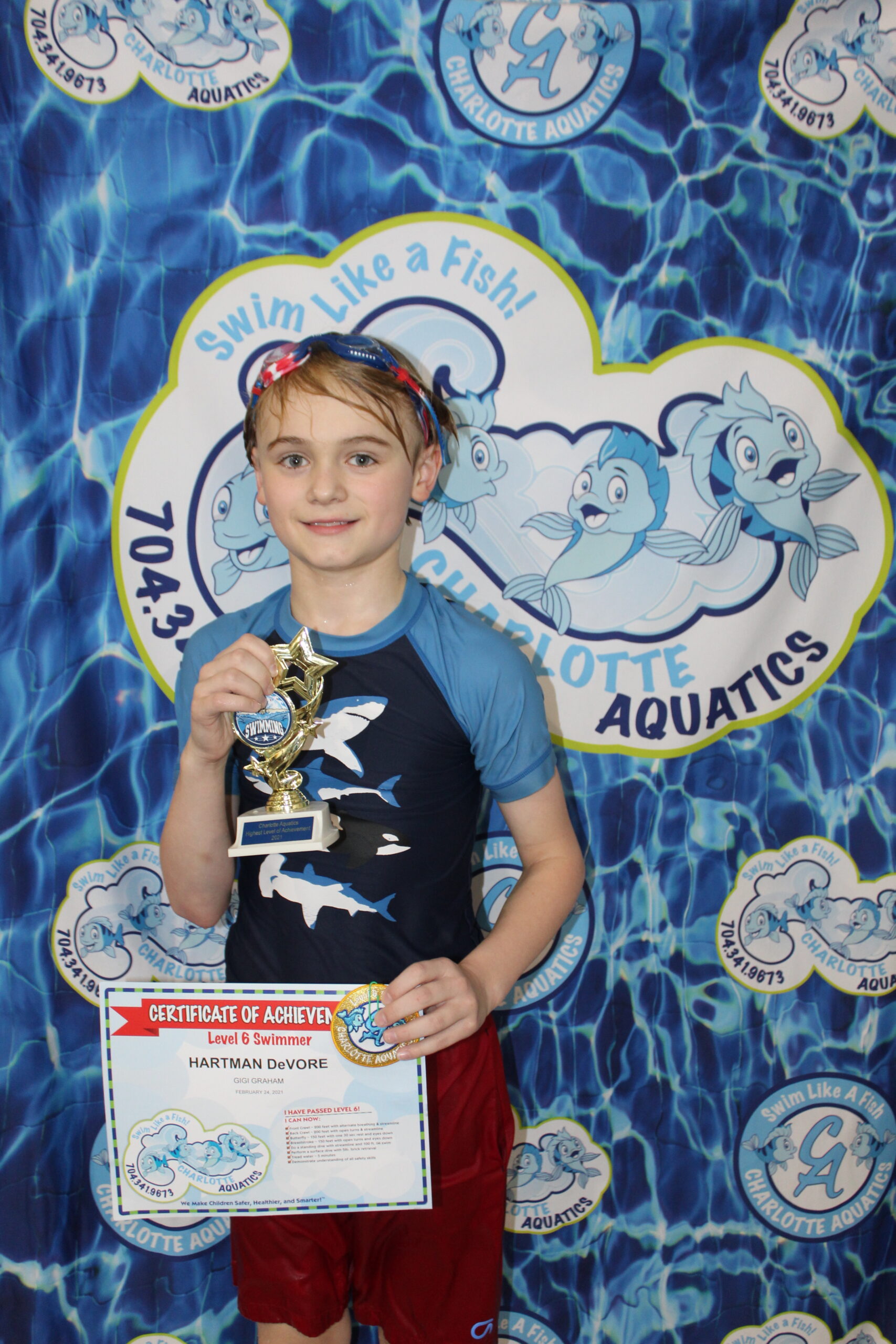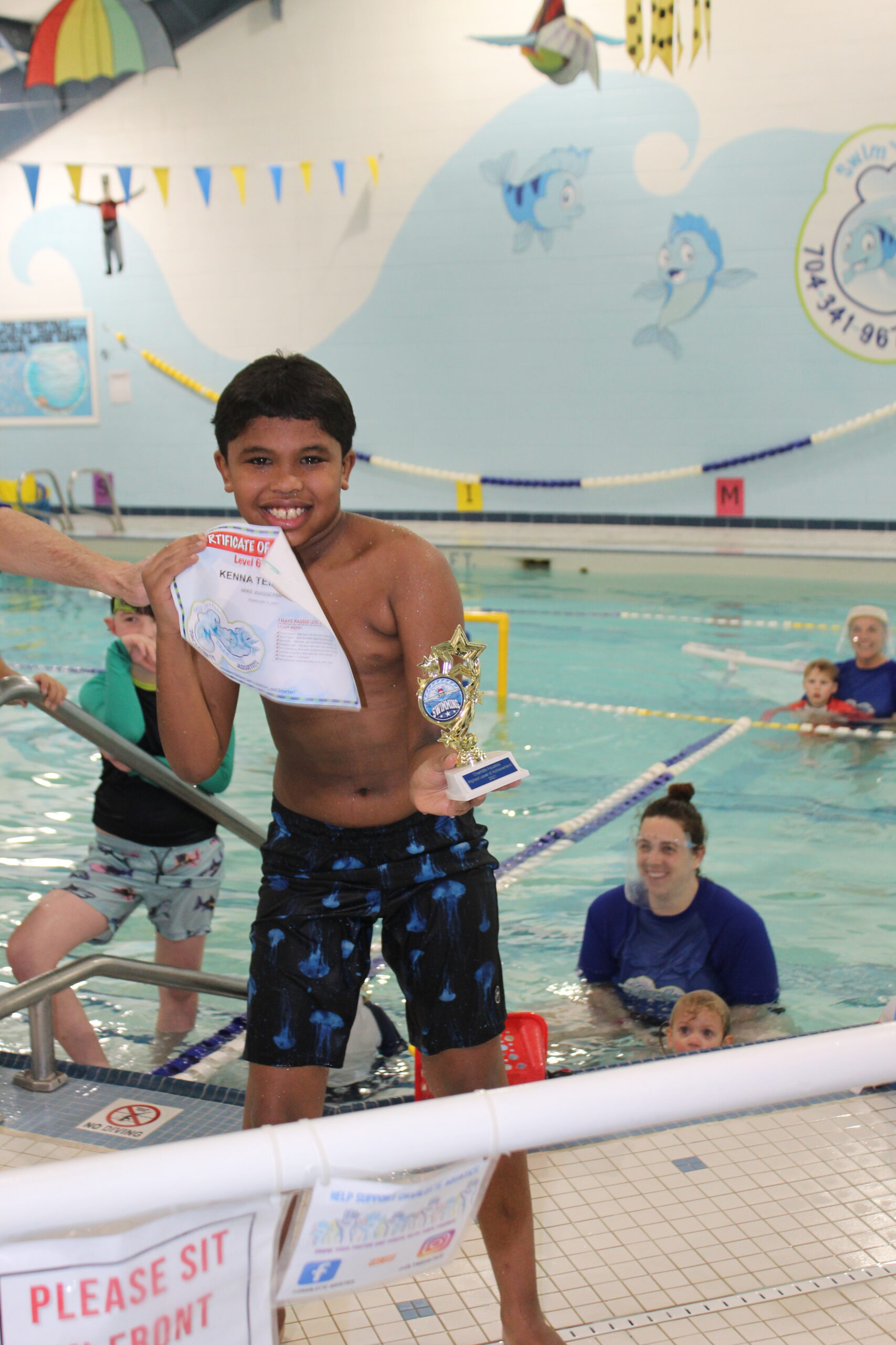 Parent Note: I am extremely grateful to all the teachers and the office staff for your dedication and fun atmosphere for both my kids. I had both my kids in a different swimming school prior to Charlotte Aquatics. When we first joined Charlotte Aquatics, I felt the difference instantly with the consistency of the teachers and the friendliness they have showed my kids for the past two and half years. I truly recommended Charlotte Aquatics to everyone I come in contact with. Thank you for all you do.