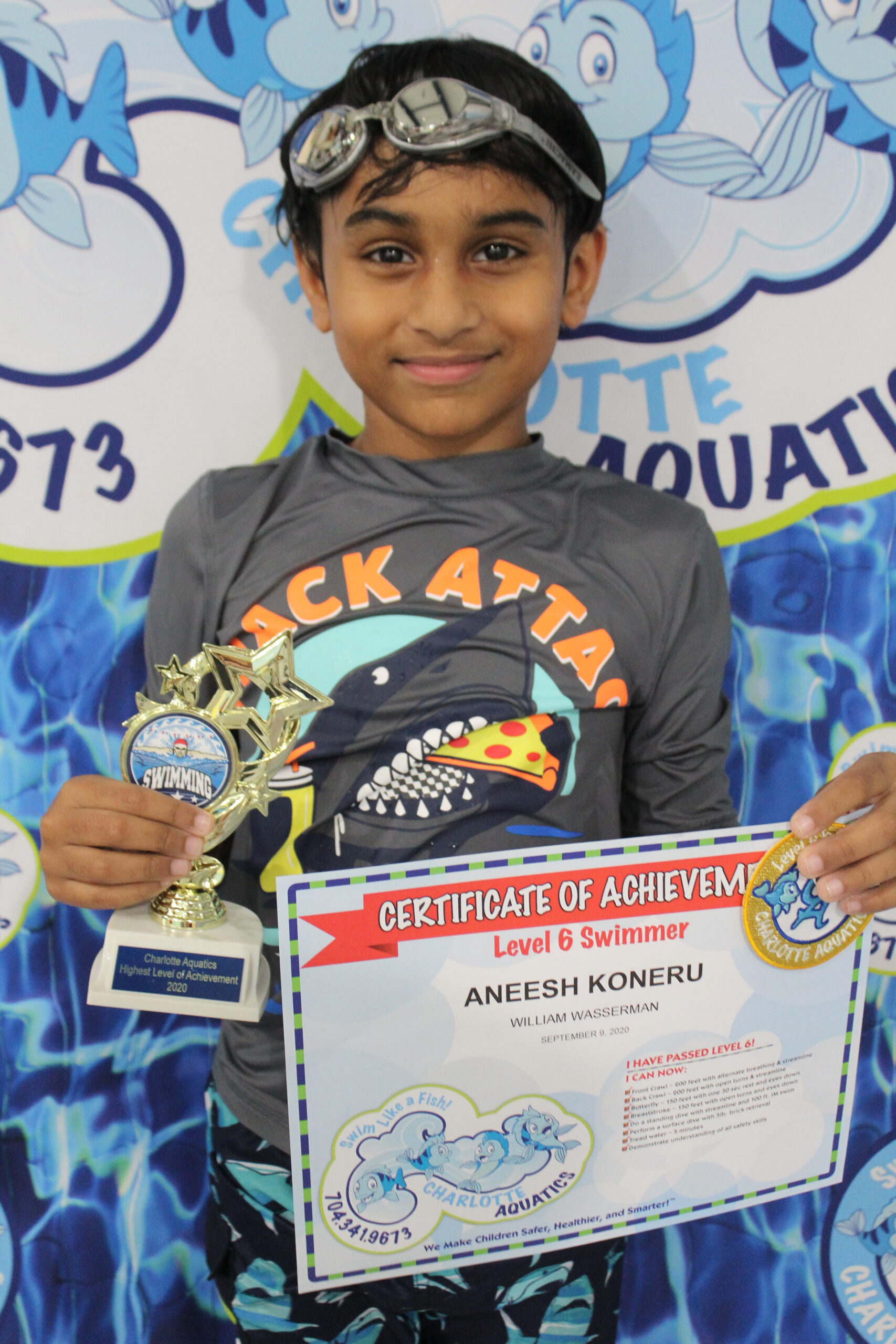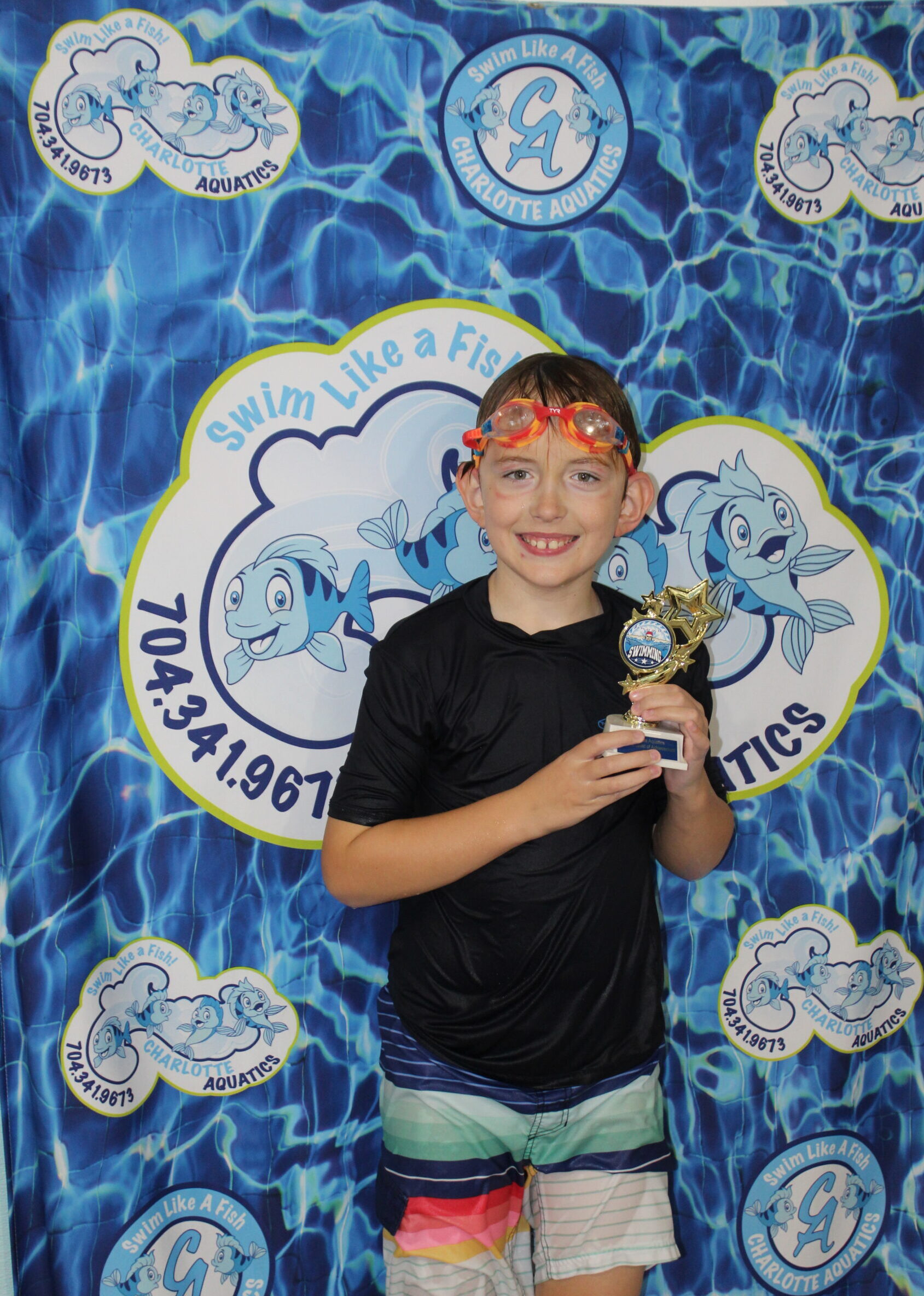 My name is Carter and I am 9 years old. I am in 3rd grade this year. When I am not swimming, I like to play football with my Dad, ride my bike, and build Lego sets. I started swimming at Charlotte Aquatics when I was in kindergarten. My favorite stroke is freestyle. My favorite swimming memory is when I learned how to do a flip turn. Charlotte Aquatics has made me stronger and I really enjoy learning from Ms. Katie. I am really excited to be graduating from Level 6!