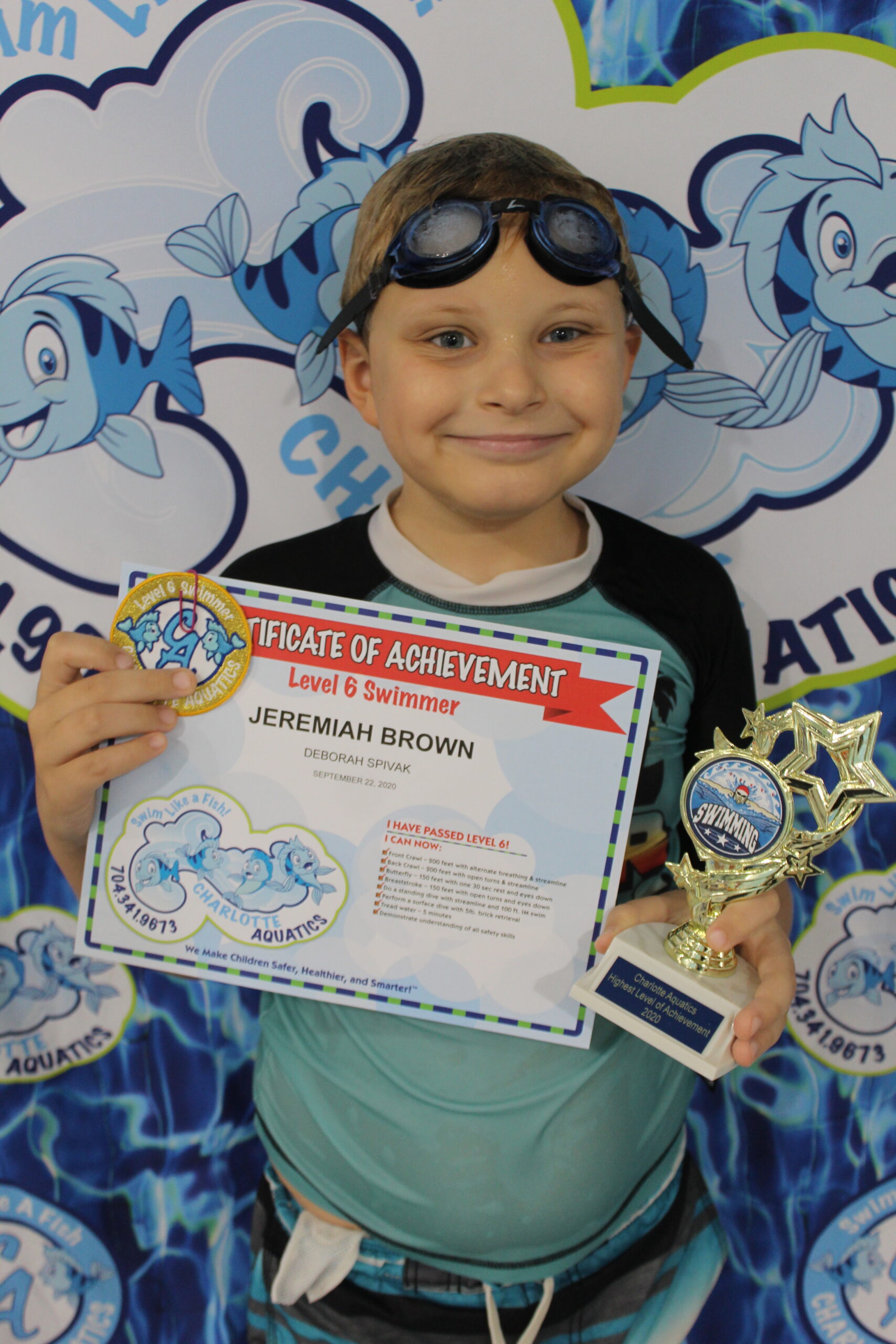 My name is Jeremiah and I am in the third grade. I am eight years old and I love swimming. I love swimming in oceans, lakes, and the Great Wolf Lodge. My parents joke that I am unsinkable. I am thrilled that I am able to swim faster than my little sister – and that she can’t catch me when we play tag in the water. When I am not swimming, I love to play Minecraft and to build with Legos. All of my patches and ribbons decorate the door of my bedroom. I am very thankful for the help of Ms. Deborah over the last two years and for her patience and dedication with me.